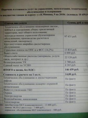 Может для начала поинтересуетесь, откуда взялись эти 14 руб. за кв.м на содержание жилья?-Интересовалась! И ответ гл.инженера УК пока меня устроил. Будут сомнения спрошу еще раз и если решу что такая цена меня не устраивает, буду искать способы изменить ситуацию! Я жила в доме которым занималась ук гарант. Там платили по 15 руб, и дому было 25 лет, и обслуживание было, мягко говоря… не удовлетворительным. Поэтому ПОКА! Пусть будет 14.