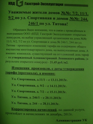 В 242/2 висит объявление про отопление с 1.11 про повышение тарифа на общедомовое имущество ничего нет. Может на это повлияло то что старшего по дому мы не избирали и собрания толком не было.