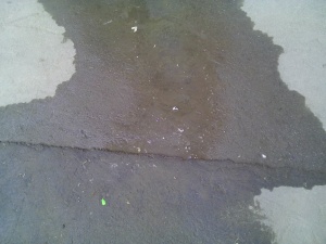 Вода стекает по водостокам с крыши на площадку перед подъездами, а затем через щель в асфальте (на фотографии) в подвал. На протяжении месяца уже. Пора принимать меры. Хотя бы временные.