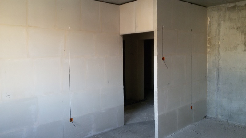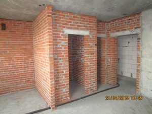 Внутри выложены кирпичом санузлы во всех квартирах, ведётся возведение гипсовых межкомнатных перегородок и электроразводки, причём идут с нижних этажей вверх ( на нижних этажах уже сделано, сейчас в районе середины примерно идёт процесс). Смонтирована горизонтальная разводка отопления и конвекторы везде. После праздников выложу фотки.