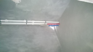 на холодном стояке 1 вывод: на разводку по санузлу + подключение горизонтальной разводки