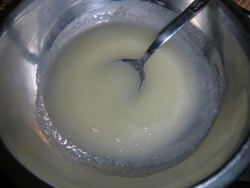 ), добавила горячего слив.масла и просто как глазурь ушла, первый раз у меня так свернулся он