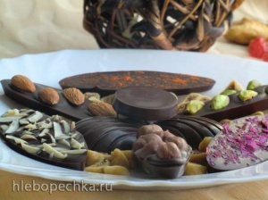 Понимаешь, я тут стол поменяла на кухне, он маленький, совсем на нем не удобно работать с шоколадом. Да и плиту надо мраморную. Или хотя бы стол должен быть металлическим, как у шоколатье во многих МК. С холодильником мне не понравилось темперирование, не то это, нужна плита. Очень хочу освоить, но пока не получается. Пока времени нет описать события и процесс, а фотки не могу скинуть с телефона, провод потеряла, надо покупать. Напишу, скину, как время будет.