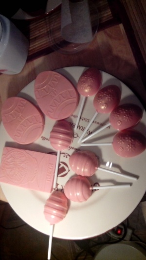кстати с шоколада трюфели делала, глазурь, надписи....для глазури на глаз разбавляю растопленное КМ и КТ своим сливочным маслом