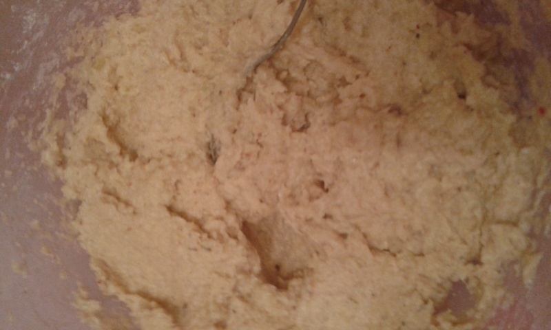 д) Если фарш кажется вам слишком жидким, то добавьте немного муки, но я бы не усердствовал. Есть вариант превратить конечный результат в тугую мучную субстанцию. Консистенция фарша должна напоминать протертый творог, заправленный небольшим количеством сметаны. Т.е., почти оладьи, но погуще.