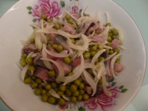раздразнили на селёдочку (фото старое) но сделала так-же.. селёдка очень вкусная попалась- то-же мальчик. салатик - быстрый. но очень съедабельный.