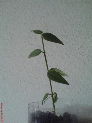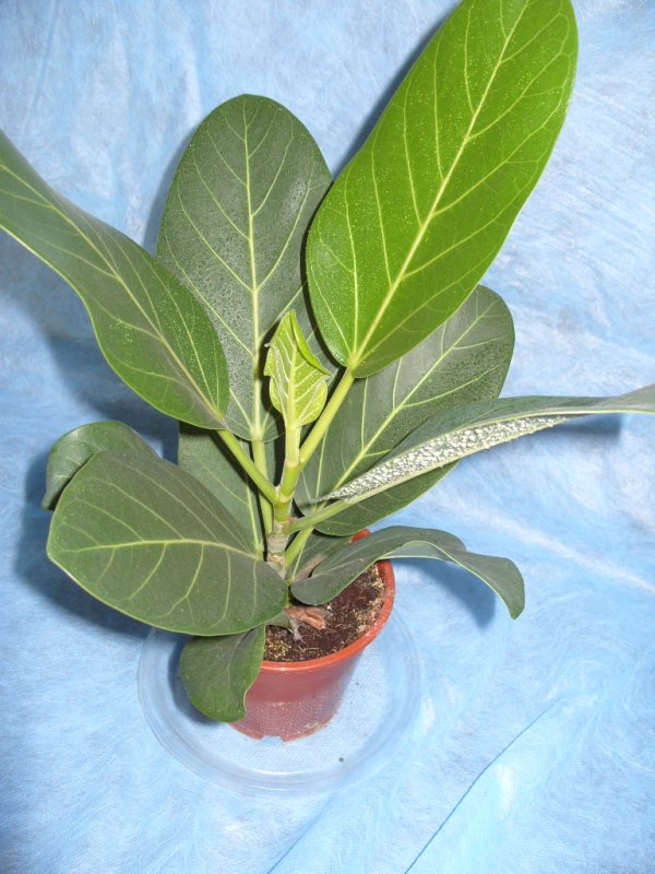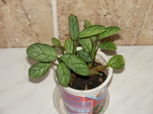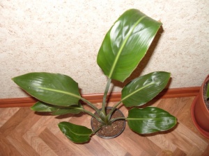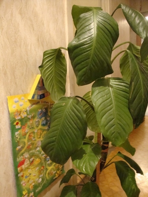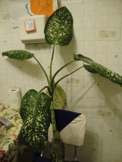 3.большой отросток диффенбахии пятнистой, стоит в воде, отличные корни , лист в длину см20, в высоту 25см - за 150руб
