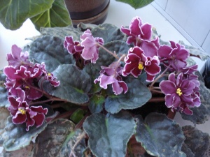 - укоренённые и уже посаженные черенки бордовой фиалки (с белой каймой);