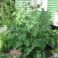 Предлагаю маклею сердцевидную. Красивое растение засчет листьев, Кусты вырастают за лето до70-80 см, а то и выше - это только лист.Цветет правда невзрачно. на зиму отмирает и по весне все заново.Мне очень нравиться