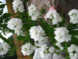 Жасмин снова продается (был отказ). Это немецкий сорт "Уайт марвел" форма цветка махровая и ветви облеплены цветами (на фото это хорошо видно)