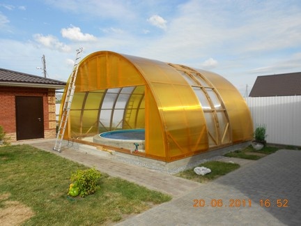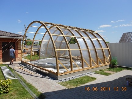 хочется закрыть бассейн на даче полупрозрачным куполом-навесом, нашла фирму, которая с 1 июня запускает производство данного товара, но ценник там высоковат. фактически они взяли за основу теплицу из поликарбонада, но почему так задрана цена - не понятно... разница аж в три раза...