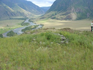 Это место чуть выше, на берегу Каменки раньше было, а когда город только основывали в начале 20 века, там были остатки земляного вала и становишь, вроде 16 веком датированы. Возвышалось оно над поймой и окружающий местностью. Предположительно там чуйские татары жили, судя по остаткам утвари. Деревья там странно растут, сосны - в основном, но согнуты в разные стороны. Мне кажется, сейчас это место «закрыто» что ли, не каждый может с ним в контакт войти. Еще мне показалось, что время там несколько иначе идет.
