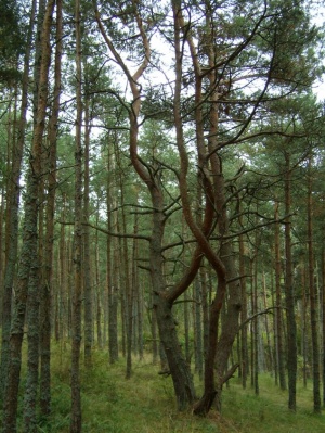 Вот что за сила перекрутила эти деревья?.. Среди абсолютно ровных соседей...