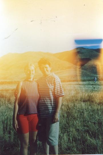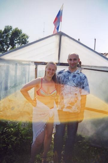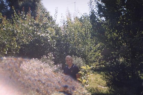Этот снимок был если не последним на фотопленке, то предпоследним. Об этом говорят не только участки засветки пленки желтым цветом, но и царапины по эмульсии. Они, как грязь, фоне неба. В фотолабораториях фотопленки закрепляют для обработки между собой, наклеивают на них номера и т.д. Конец одной пленки идет нахлестом на другой. И там, где такие зажимы стоят - там проявка идет по-другому. Кроме того, если неаккуратно хранить необработанную пленку, то крайние витки рулона могут засвечиваться. Вы можете убедиться в этом сами - фотопленка же у вас.