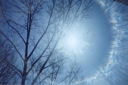 А так интересно, конечно. Снимок 1, например, выглядит точно так, как я наблюдала это явление физ.зрением. Сначала даже показалось, что горят 3 солнца, пошла за мыльницей. Тут разглядела, что это гало вокруг одного.