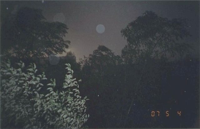 Пару лет назад я сдругом был в ночь на рыбалке и как обычно с фотоаппаратом и дома рассматривая снимки увидел на трех из них интересные круги
