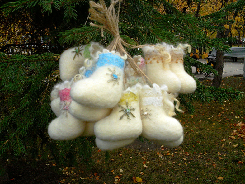 ) с учетом усадки примерно 40% ) и уваливаем в стиральной машинке. Вытаскиваем, придаем форму, сушим на батарее, украшаем и получаем вот такую красоту
