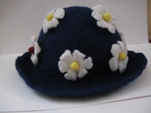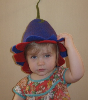 маленького цветочка уже "заваляли" всяко :ха-ха!: уже вторая шапка у мелкой, а я еще несколько фасонов свалять хочу ))