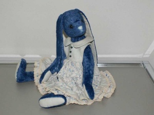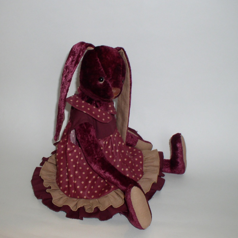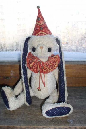 Это зайчика Эмили, рост 42 см, винтажный плюш. Платье сшито мной, искусственно состарено. Эмили участница выставки "Игрушки у подушки" Сургут 2010.