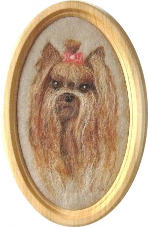 Сделаю по фотографии портрет Вашего любимца в технике сухого фильцевания. Материал - шерсть. Работа оформляется в деревянную рамку.