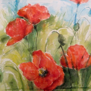 Тарелки, д. 26 см. Роспись по керамике запекаемыми красками. Цена 500р.