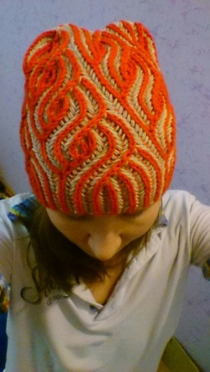 Интересно как она на голове будет смотреться, отворот связан крючком, он более плотный чем верх.