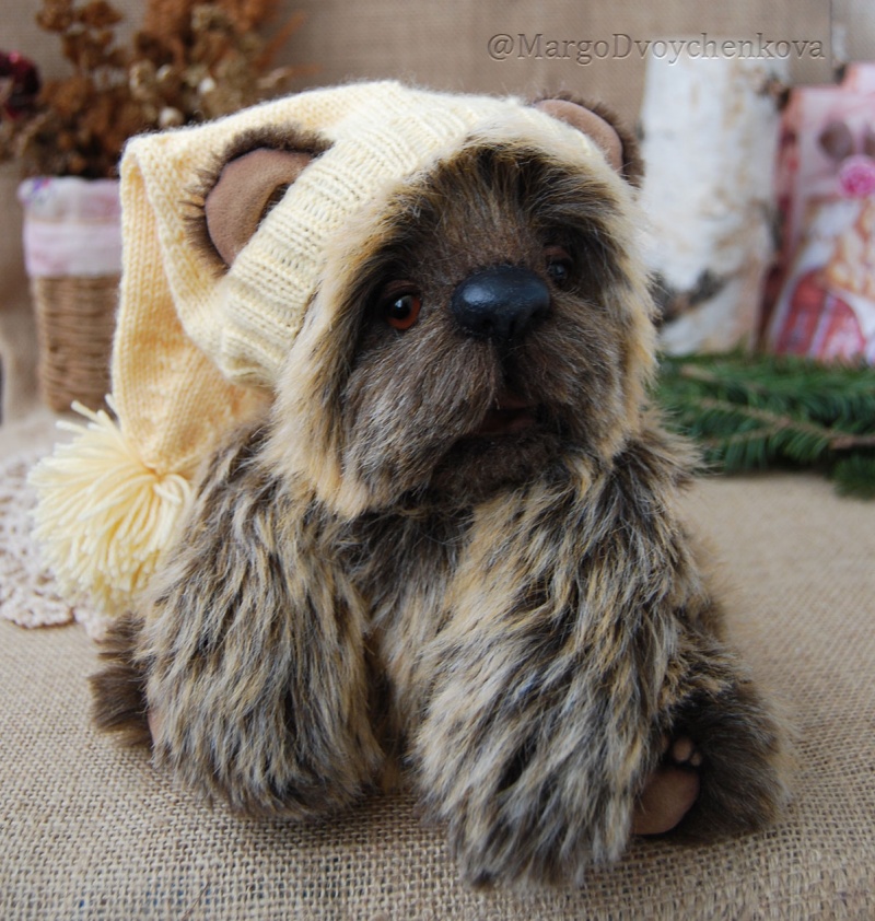Технические подробности: выполнен полностью вручную по авторской выкройке из немецкого мохера, набивка синтепух, утяжелён металлическим гранулятом, крепления все подвижные на 6 шплинтах, глазки немецкие стеклянные, тонировка художественными маркерами. Рост около 11 см. Умеет стоять, сидеть, лежать и может принимать разные смешные позы. Имеет документ удостоверяющий личность и шапочку))