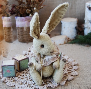 Если Вам понравился зайка, и Вы хотите себе подобного, напишите мне об этом в личном сообщении, и мы обсудим сроки изготовления и другие нюансы. Прошу учитывать, что точная копия невозможна! Игрушка интерьерная, не предназначена для игры маленьким деткам!