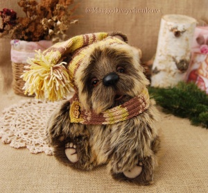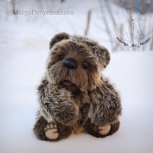 Технические подробности: выполнена из немецкой "кудрявой" вискозы двух цветов, набита опилочками и синтепухом, утяжелена минеральным гранулятом, крепления все подвижные на 6 шплинтах, глазки немецкие стеклянные, тонировка натуральным кофе и художественными маркерами.