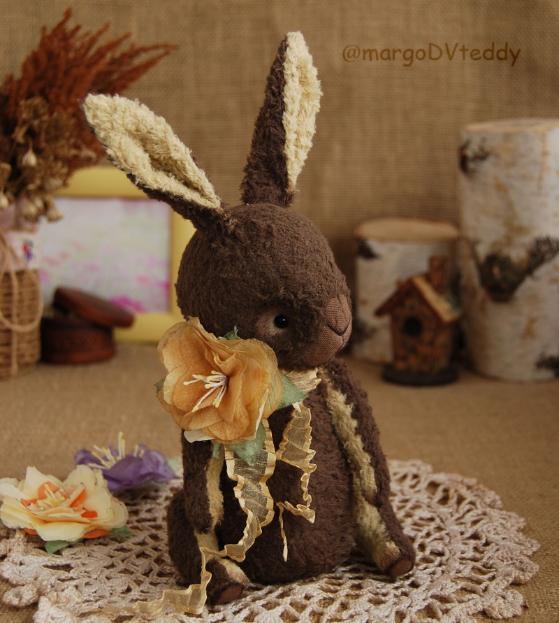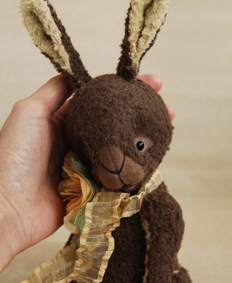 Технические подробности: выполнен полностью вручную по авторской выкройке из немецкой вискозы, внутри опилки, утяжелён металлическим гранулятом, крепления все подвижные (5 шплинтов), глазки стеклянные, ушки и хвостик армированы, тонировка художественными маркерами. Одежда снимается.