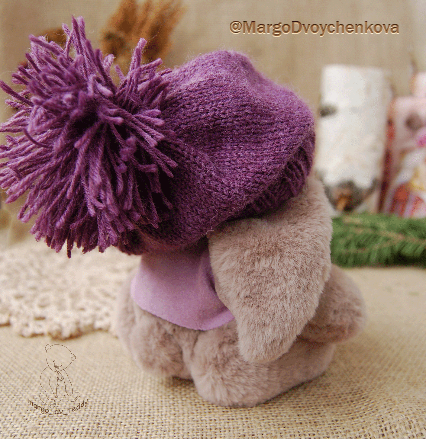 Технические подробности: выполнена полностью вручную по авторской выкройке из искусственного меха (немецкий плюш), искусственной замши (внутреннее ушко), крепления подвижные - 6 шплинтов, набивка синтепух, утяжелена металлическим гранулятом, глазки стеклянные, тонировка пастелью и художественными маркерами.