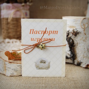Имеет документ, удостоверяющий личность - Паспорт игрушки, а также специально для неё связанную шапочку.