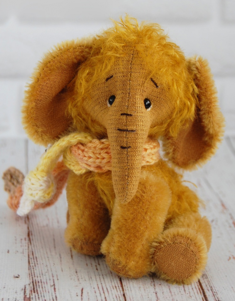 P.S. Игрушка интерьерная, не предназначена для игры очень маленьким деткам. Но детки постарше, при условии бережного отношения, вполне могут стать с мамонтёнком добрыми друзьями - почему бы и нет! У меня уже есть юные поклонники моего творчества, для которых я с удовольствием делаю игрушки.