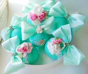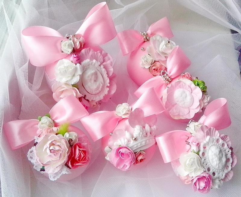 До Нового Года 2 дня. Все заказы выполнены. Очень хочется показать результаты. Мятные шары оказались самыми популярными. Я тоже заболела ими так,что сделала и себе несколько штук на ёлку. А это наборы сделанные на заказ. Один остался в Новосибирске,другой уехал в Псков. Розовый набор тоже будет украшать ёлку далеко отсюда,он отправился в Самару.