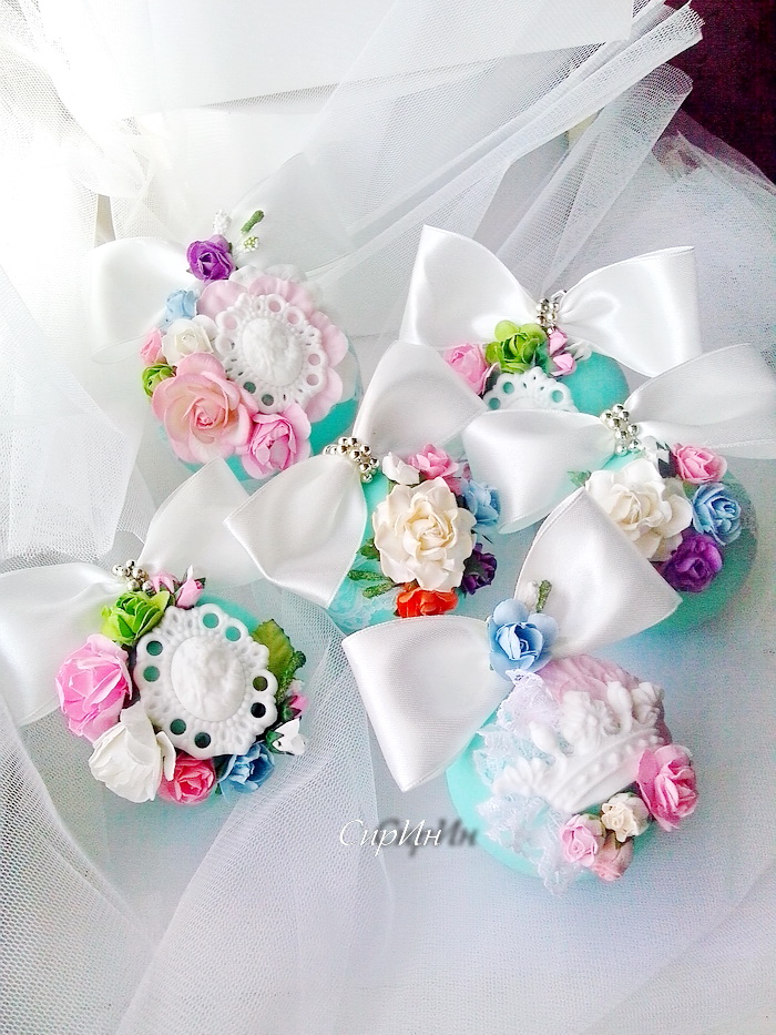 Все шары окрашены вручную. Краситель гипоаллергенный, для детей не опасен. Лепнина выполнена из спец.пластика для декора.