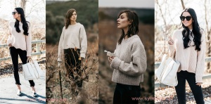 Например, черные леггинсы из кожзама и хейворд из мягких ниток пастельного оттенка – великолепное, хоть и контрастное, сочетание, дополняемое как кроссовками, так и ботильонами на шпильке.