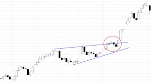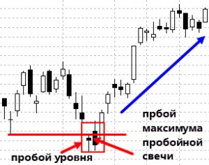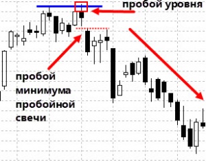 когда цена закрытия последней свечи оказалась за пределами соответствующей