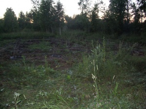 Да, как раз за пятачком торговым - метров 30-50, там был участок под детский сад вроде как, потом разрезали и на аукционе осенью распродали. Немного настораживает, что на всей этой площадке нет ни одного дерева - может конечно просто поляна.. Не думаю, что специально кто-то выкорчевывал. Тут где-то писали, что если деревьев нет - значит вода близко, это настораживает, хотя место совсем не кажется низким.