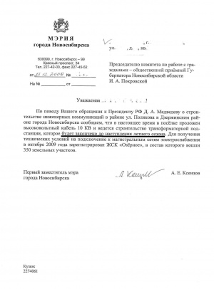 Или вот еще письмо, где говорят, что будет закончено строительство ПОДСТАНЦИИ, т.е. не здания подстанции, а самой ПОДСТАНЦИИ. Закончат к наступлению лета! Но тут они грамотно написали, хитрые жуки)). Не написали лето какого именно года, так что будем ждать это счастливое лето. Хотя что значит ЗАКОНЧАТ… ну да закончили, никто больше там не работает, значит слово сдержали))