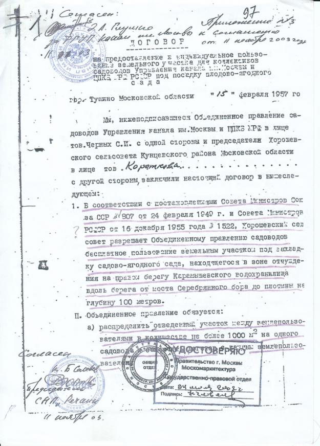 Позавчера Союз садоводов России провёл внеочередной съезд по "Речнику", на нём была моя знакомая. По её информации от "речниковцев" до 2005 года весь землеотвод находился в аренде у "Мосводоканала". В 1998 году Лужков включил эту территорию в состав парка, очевидно, чётко понимая, что делает: суды начались только в 2006 году, т. е. после окончания срока аренды.