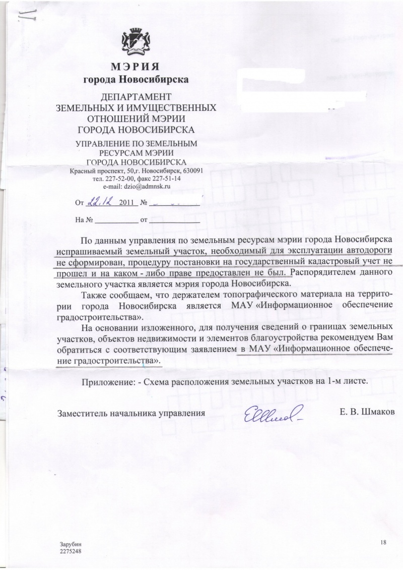 а потом и того веселее! Оказалось что по данным департамента земельных отношений для устройства дорог нужен участок. Ну то есть для того, чтоб построить дорогу нужно выделить участок и перевести его из категории "земли поселений" в категорию "земли дорог и коммуникаций", чего мэрия (которая являеться собственником земли) не сделала.