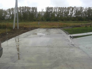 Видите на фото шлакбаум с ограничением по высоте? Вы думаете я пущу тут ховы? Даже не смотря на то, что это общий участок! У нас тоже была уже ссора с соседями из за этого. Дело в том, что нужно было просто насыпать недостоющие 3 метра до ширины улицы (15 метров) и пускать грузовики в объезд бетона, чтобы его сохранить для пользования нам (когда тут жить все уже будем). Но соседи не хотели строить (стоимость 5 тыс рублей) объезд, а решили сэкономить и возить по бетону. При этом не вложив в это все своих денег или при их отсутвии своих сил/времени. Но так не должно быть. Хочешь что то делать у себя на участке - нужно как то договориться с соседями и делать это не в ущерб общим интересам.