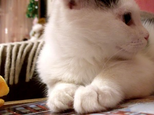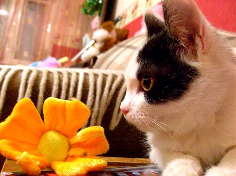 В принципе есть коты, которые всю жизнь едят как в первый и последний раз, но меня в этом плане смущает его брюхо. Он сейчас прилично двигается (играет с Даринкой и Муськой), бегает, прыгает, ест 3 раза в день умеренными порциями, а животик меньше не становится.