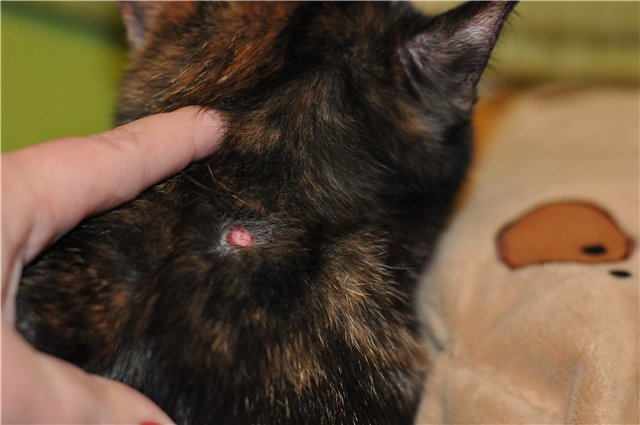 Как вариант - аллергический дерматит, кошка это место расчесывает?