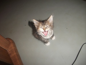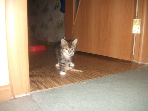 На сегодняшний день Кася (дочка так назвала котёнка) чувствует себя замечательно!!!! Аппетит отличный (кормлю Бэбикэт влажный 2 раза в день и сухой в размере дневной нормы). Пьёт воду только из ведёрка (встаёт на задние лапки и наклоняется в ведро 3-х литровое). Стул стал нормальный (колбасками). Неплохо играет и мышками-игрушками и шариками от шоколадных яиц.
