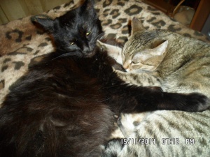 всем день добрый . Так случилось что мне пришлось сдать свою квартиру и перехать к родителям , а там взсрослая кошка . У меня своя . Пока та была на даче моя жилва спокойно . Сейчас нам нужно их примирить . Взрослая кошка (черная) не принимает мою(беленькую ) . Сейчас сидят по разным комнатам. Вчера двери забыли закрыть черная чуть ли не разодрала мою беленькую. Моя молодая двух лет нет , той уже 10 .........Что делать не знаю ? Нужны советы, в инете изучила что нужно делать , но та черная она как пантера , она никого не подпускает к себе из семейства кошачьих даже на даче . Всех дерет кто зайдет на ее территорию. ТОка котика ей одного подавай (есть там любимец)......Короче SOS!!!!! жду советов. Кошки не стерелизованы