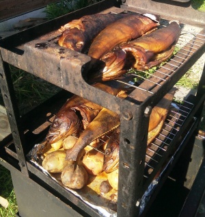 Хватает 4 язей закоптить по 2 язяз на решетку, правда жиросборниканет, но капающий- грящий жир ток аромат дает. Последнее мое ИМХО.