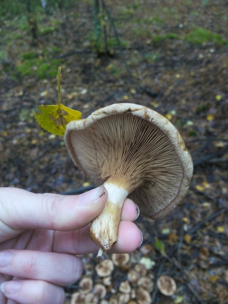 Видели в смешанном лесу такие грибы, растут поляной.. Пока гадали, что это за гриб, увидели их же , выкинутые кем-то :)))