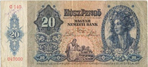 1941 год, мадьяр банк, всё хорошо, но на обороте надписи на немецком, непонятном, болгарском, белорусском(?) и ещё на одном непонятном.