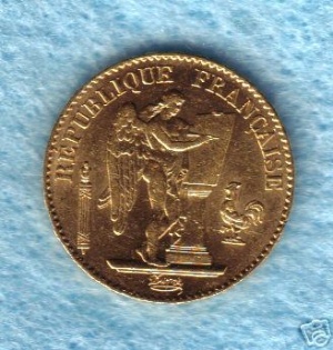 Вот тоже примечательная монетка. Приобрел подобную у одного француза. Называется "французский ангел" или"ангел, приносящий удачу". Эти монеты в свое время вручали летчикам люфтваффе во время войны. Потому как монета эта с легендой и считается, что она приносит удачу, что вобщем из названия понятно
